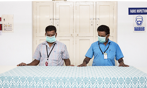 Fabrics are tested at the In-house lab after the processes such as printing, dyeing or weaving to check if the parameters (dimension stability, colour fastness and appearance after wash) are with in limitations.